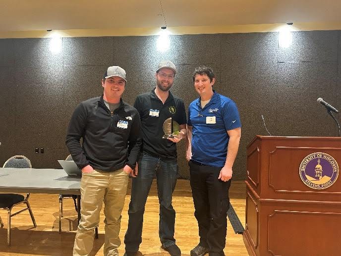 Image: The 2024 Wisconsin R3E3 Award was presented to Andrew Forsythe (Left) and Alex Krause (Center) of the Fond du Lac Regional Wastewater Treatment and Resource Recovery Facility by WI R2E Committee Member Matt Seib (Right) during the Operational Seminar held in Stevens Point, WI in February 2025.